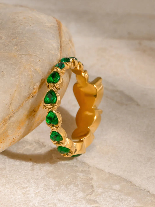 Stainless Steel Inlaid Zircon Heart Ring